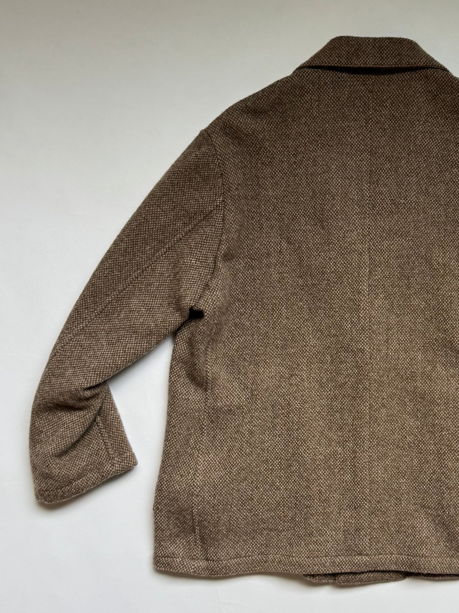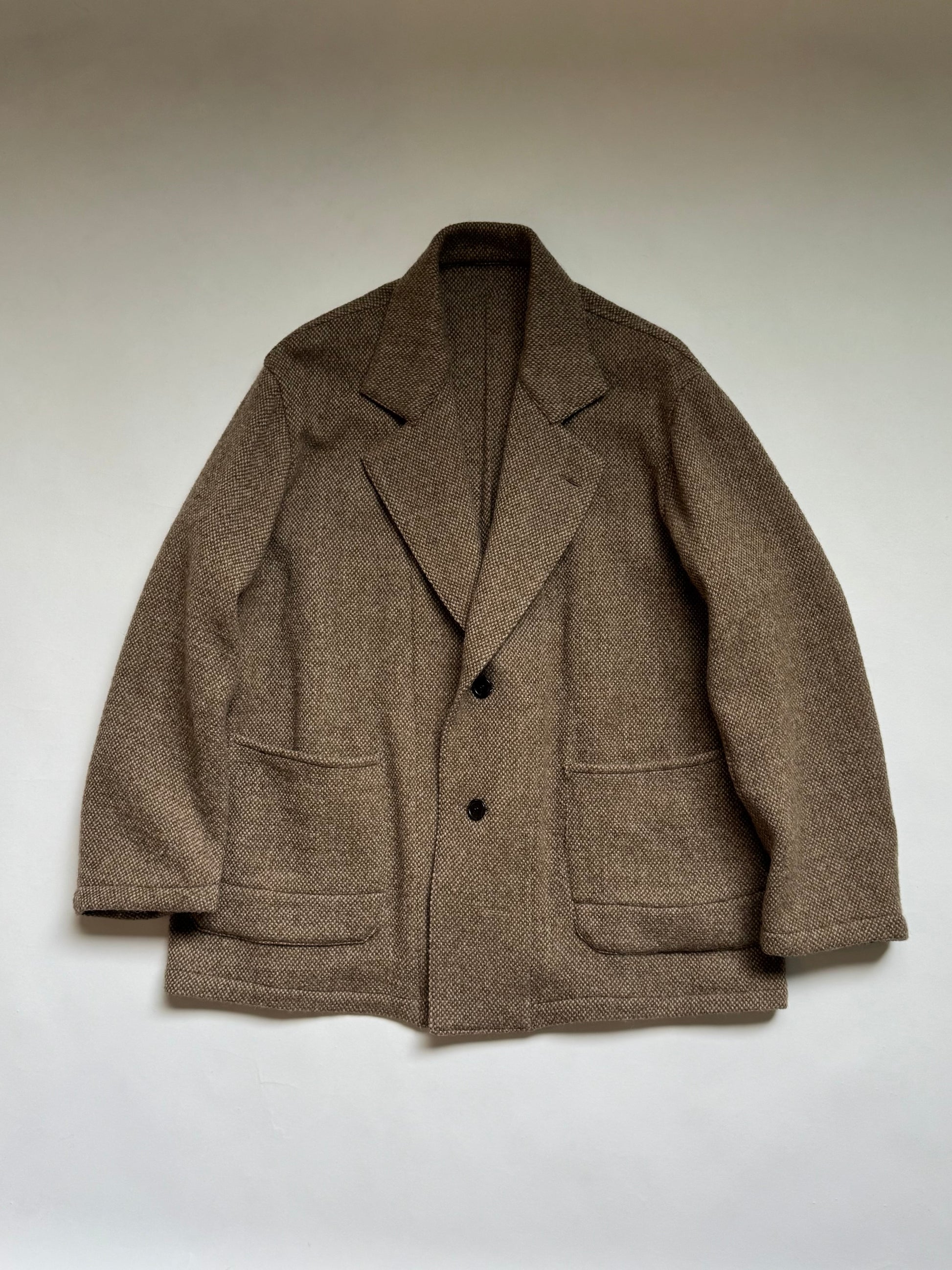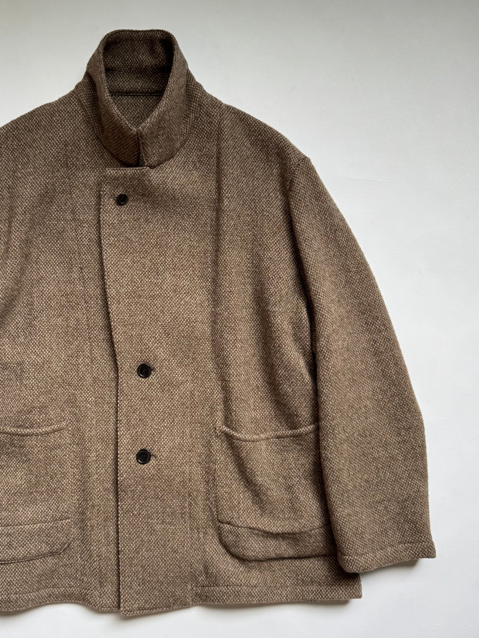 凹凸のあるバスケット織は、ツィードのような重厚感に反して着用感が軽くライトアウター代わりに着こなせるプロダクト。