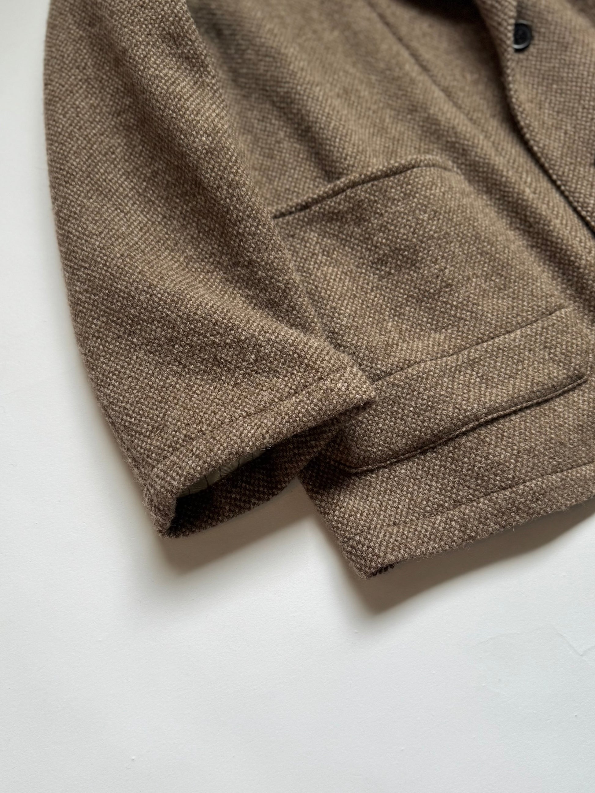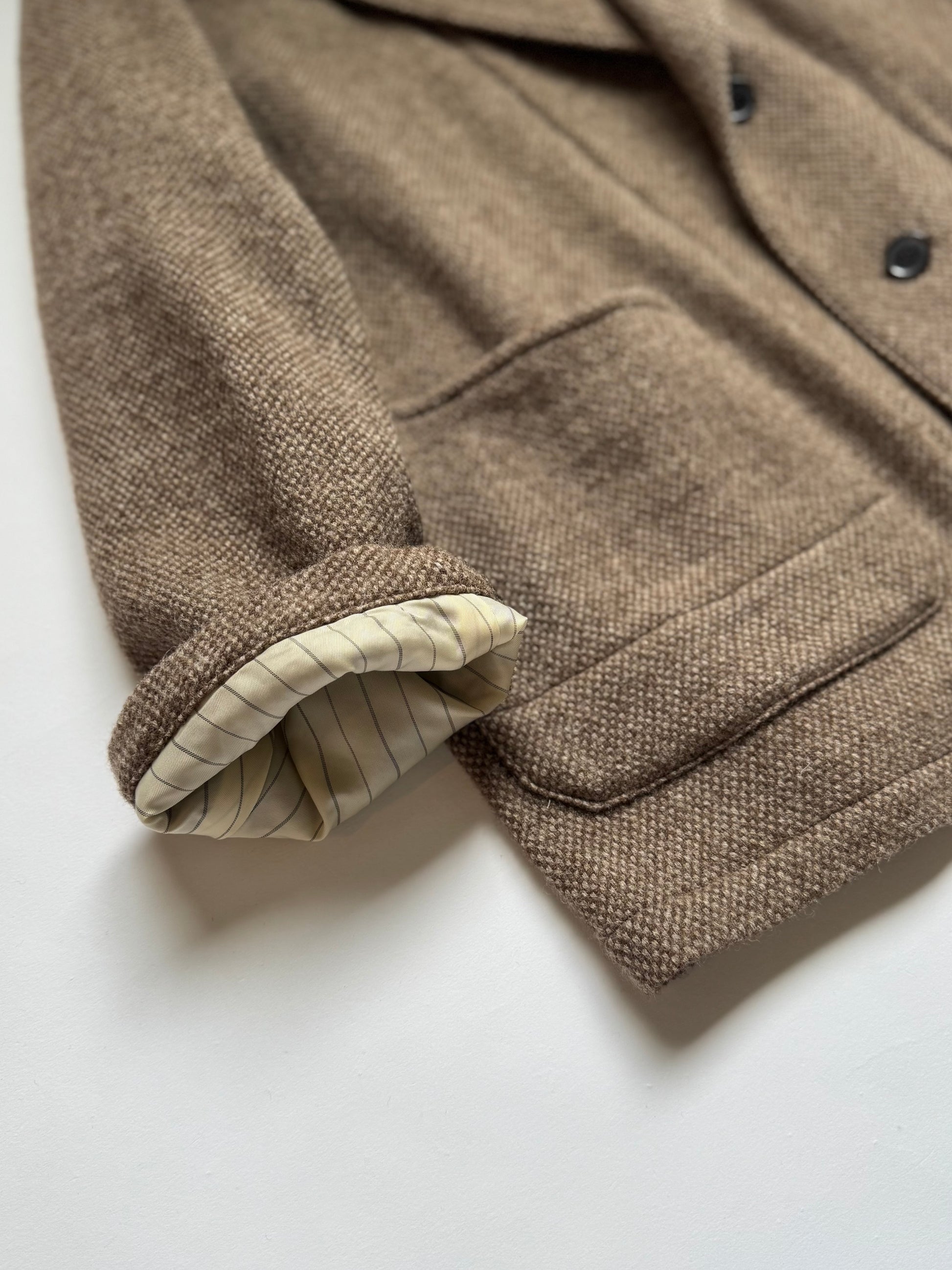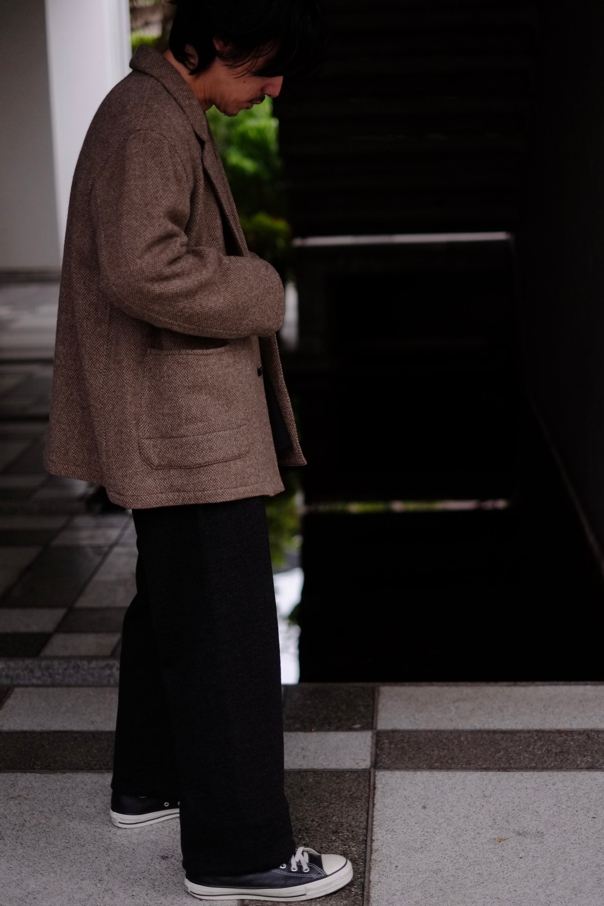 凹凸のあるバスケット織は、ツィードのような重厚感に反して着用感が軽くライトアウター代わりに着こなせるプロダクト。