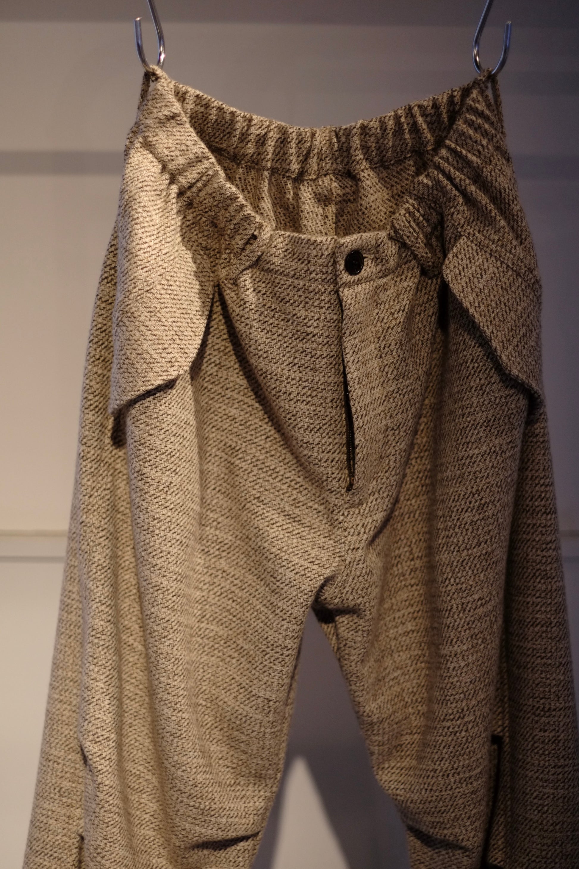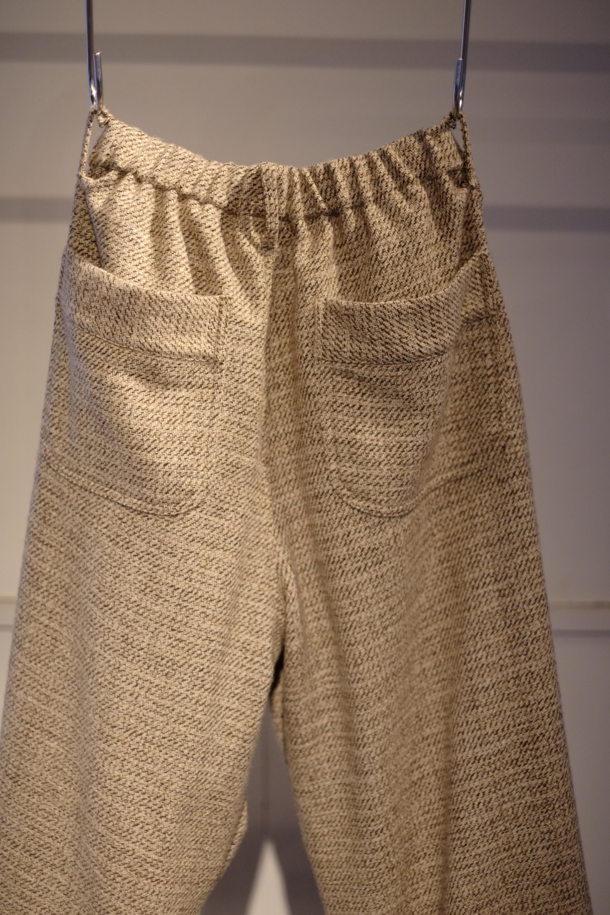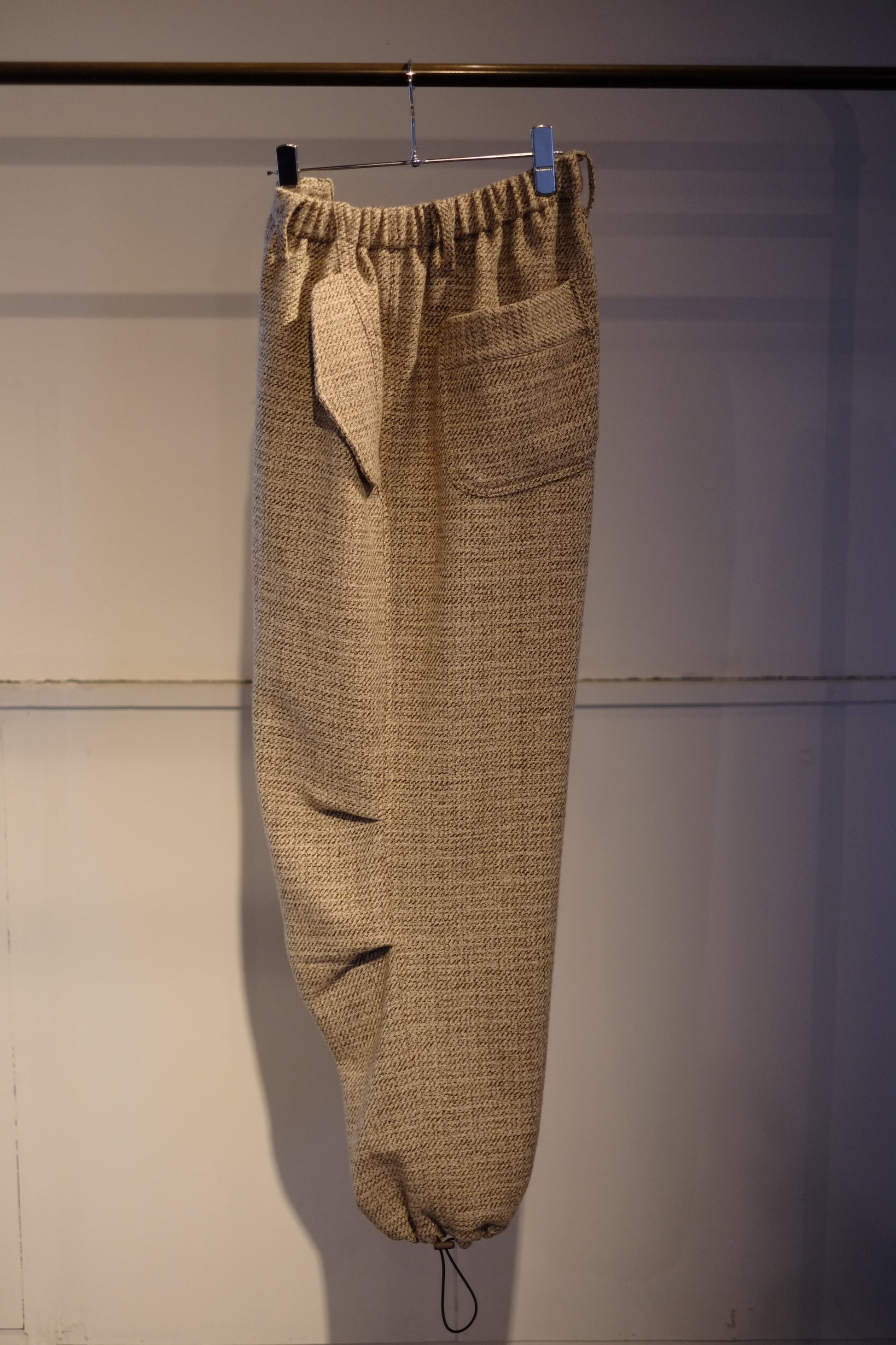 ウエストはゴム+ドローコードのイージー仕様。快適な穿き心地と、日常着として使いやすいバランスを兼ね備えた一本です。
