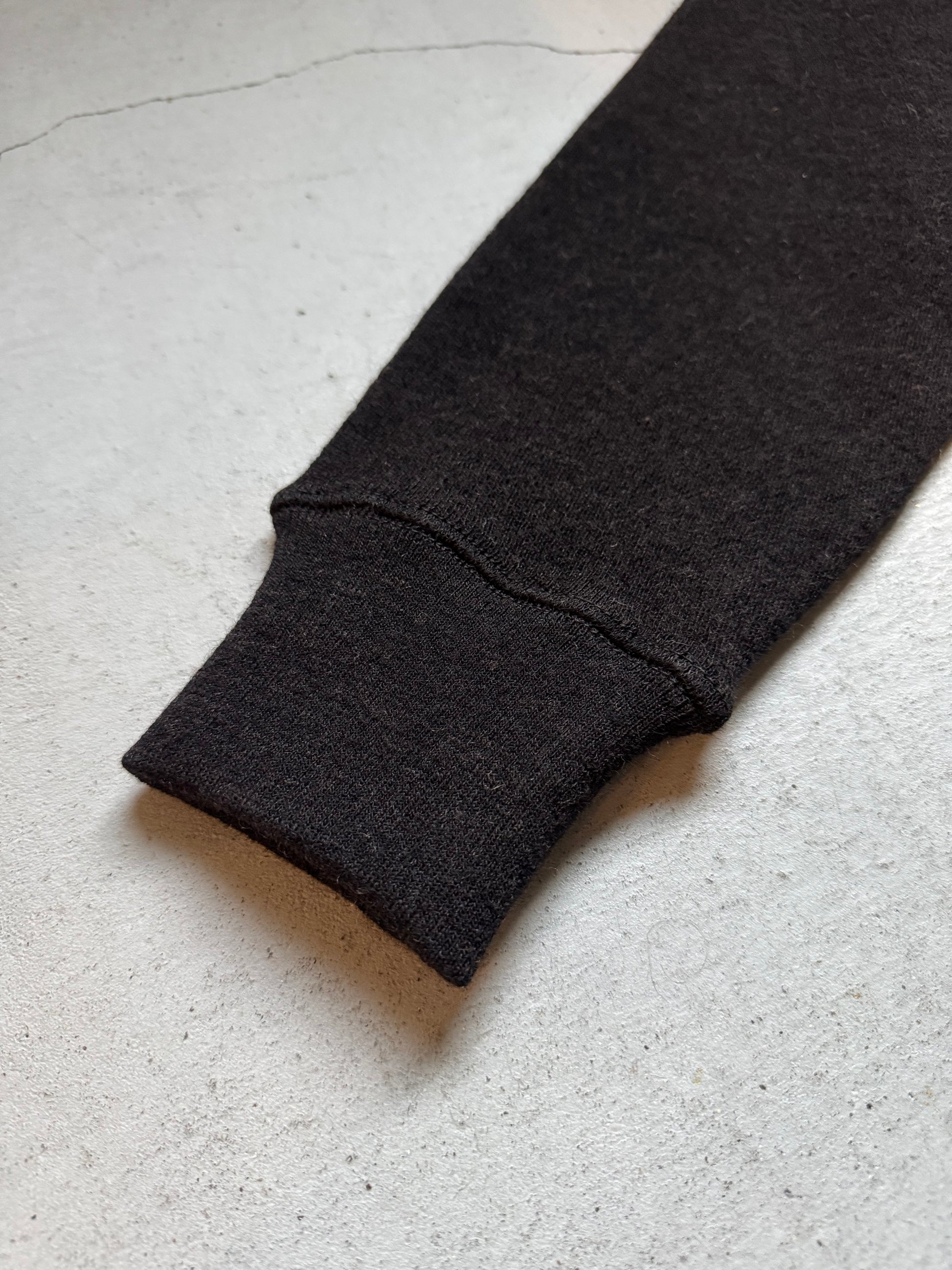 質感と肉感のバランスにこだわり、最適な番手を選定した強撚オリジナル糸で、ドライなタッチと軽やかなハリ感を実現。保温力は確保しつつ、重ね着しやすい厚みに仕上げられています。