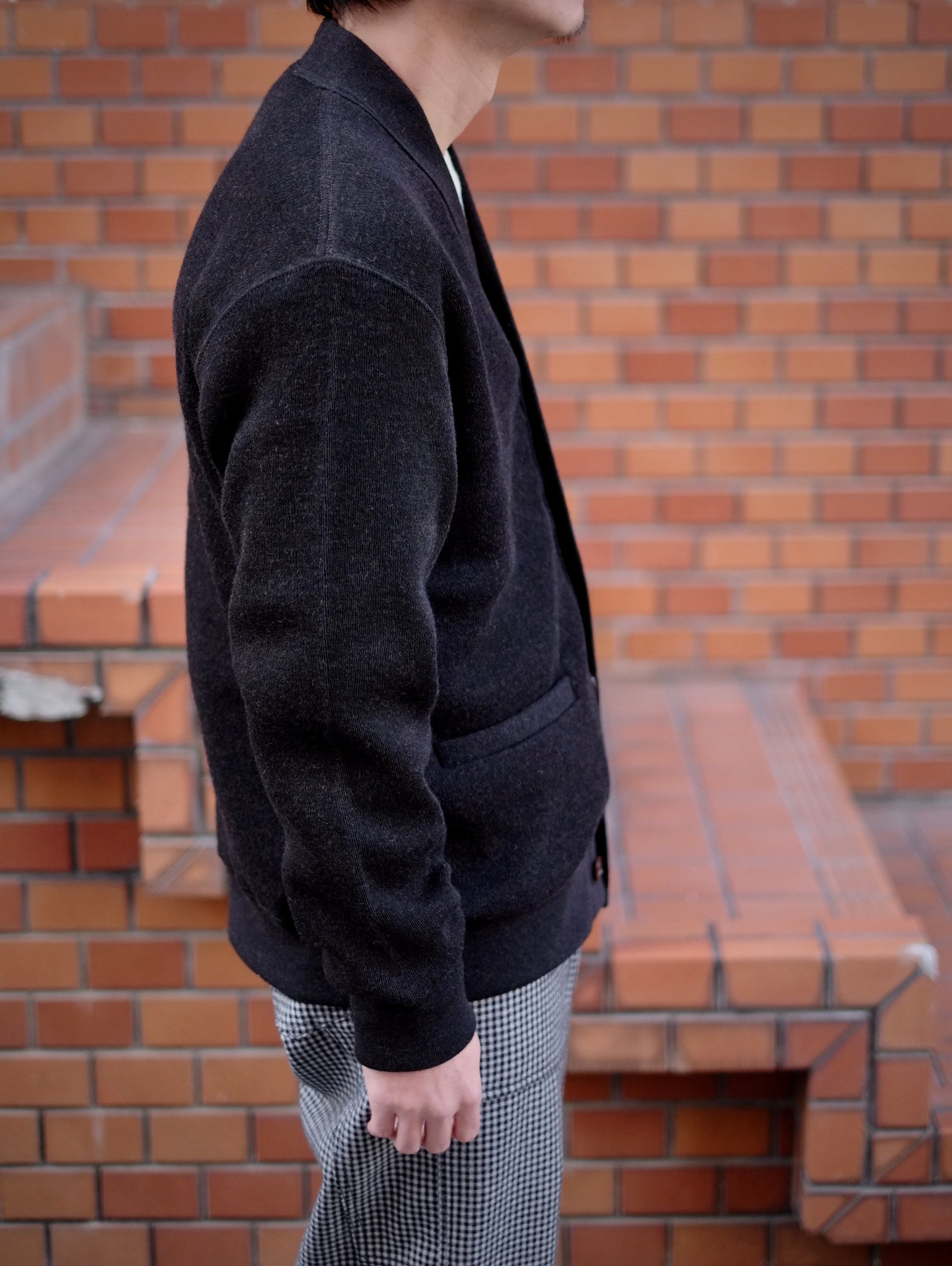 Slopeslowらしい手間も魅力。編地はニット工場で、縫製はジャージー工場で仕上げるなど、複数の職人の手を経て完成。ワークウェアのような“工業製品としてのリアリティ”を大切にした新作プロダクトは、気づけば手に取ってしまうカーディガンです。