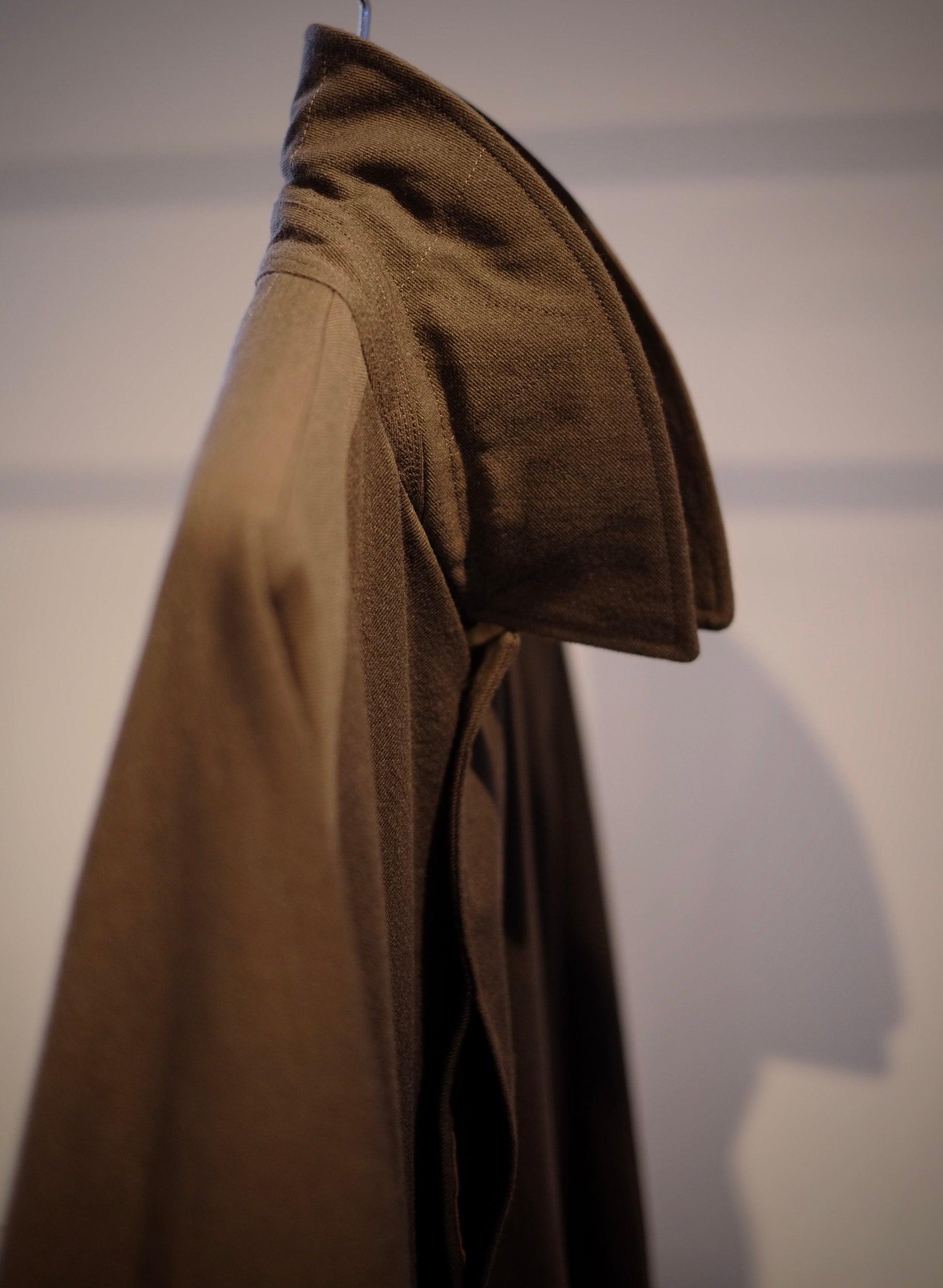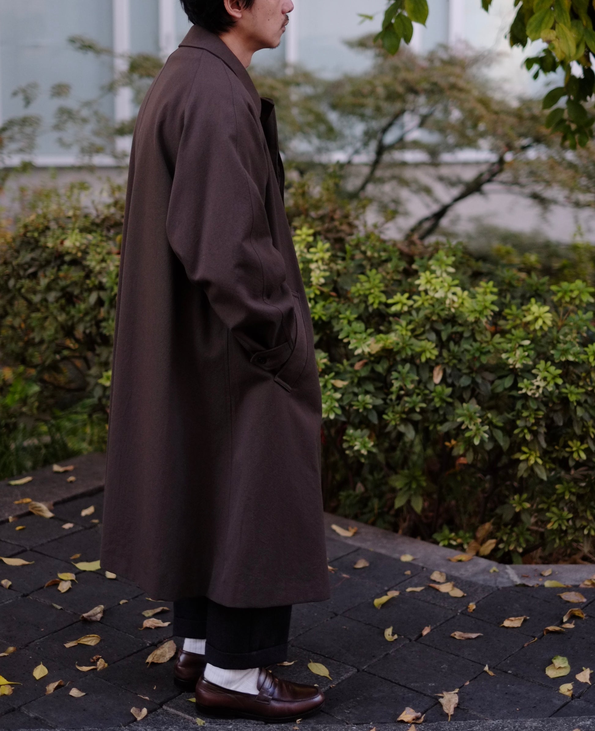 スタンダードなデザインのバルマカーンコートは、様々な体型を包み込む2枚袖構造を採用。