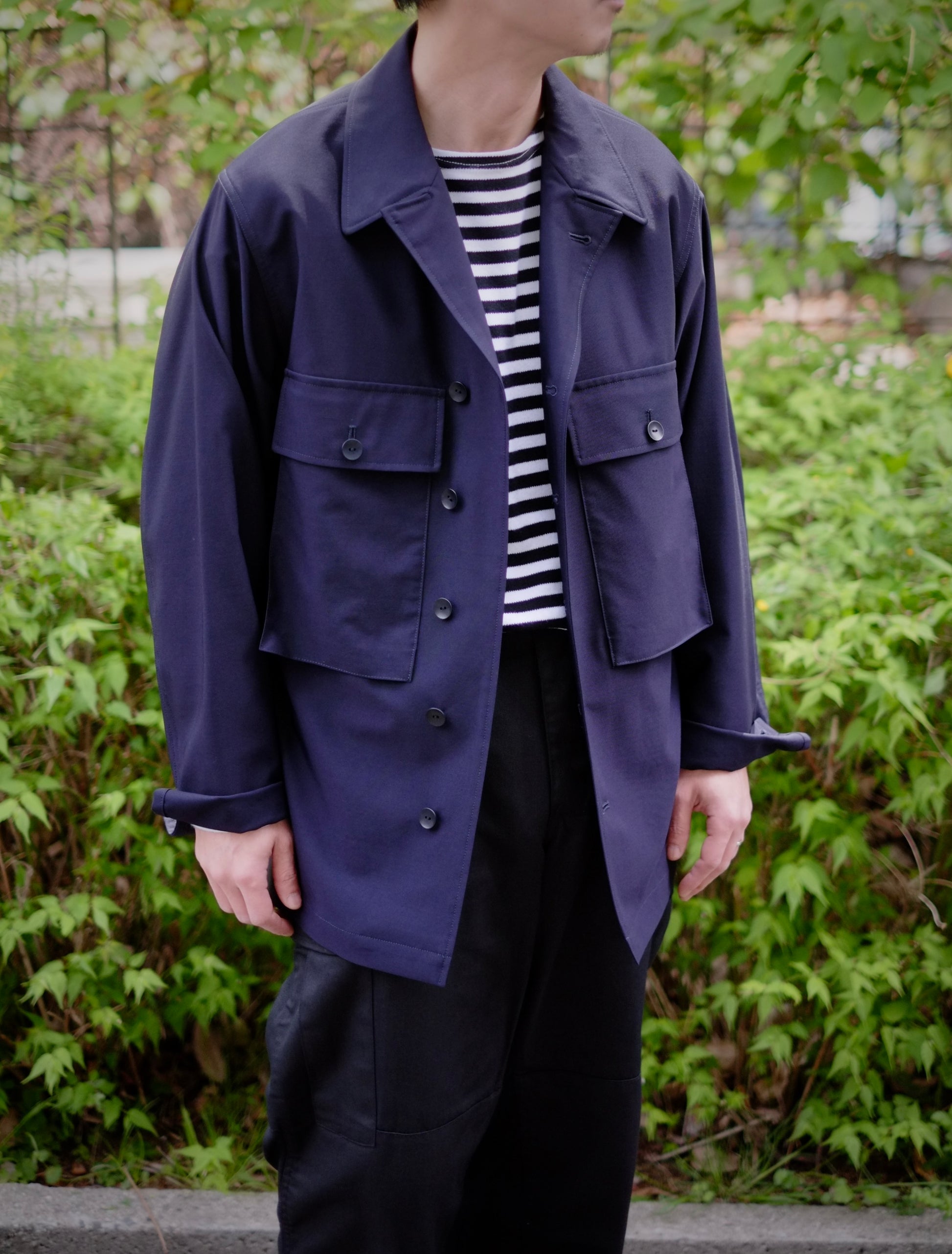 フラールコレクションとして、軽やかな構造でありながら、しっかりとしたアウターの存在感を備えています。