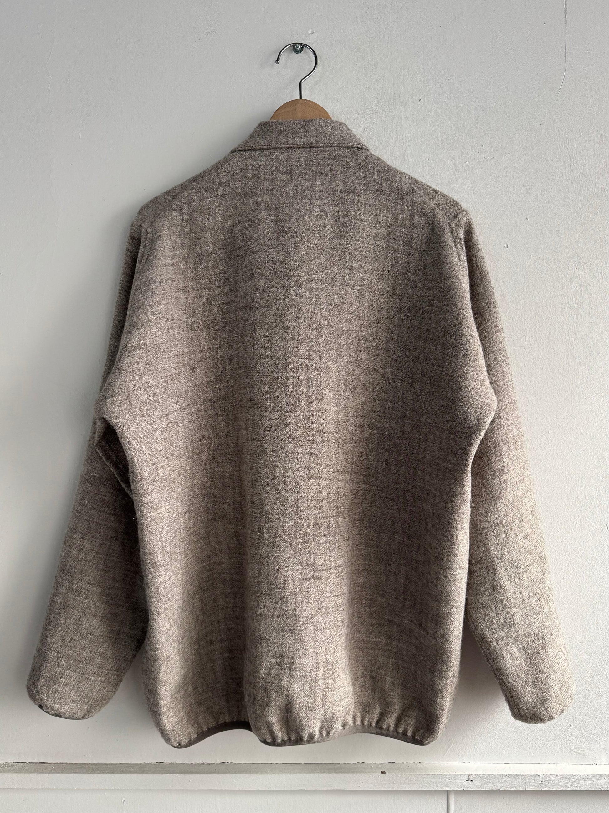 タテ糸にノルマンディリネン、ヨコ糸にピュアシエトランドウールとノルマンディリネンの混紡糸を使用したヘリンボーン生地。
