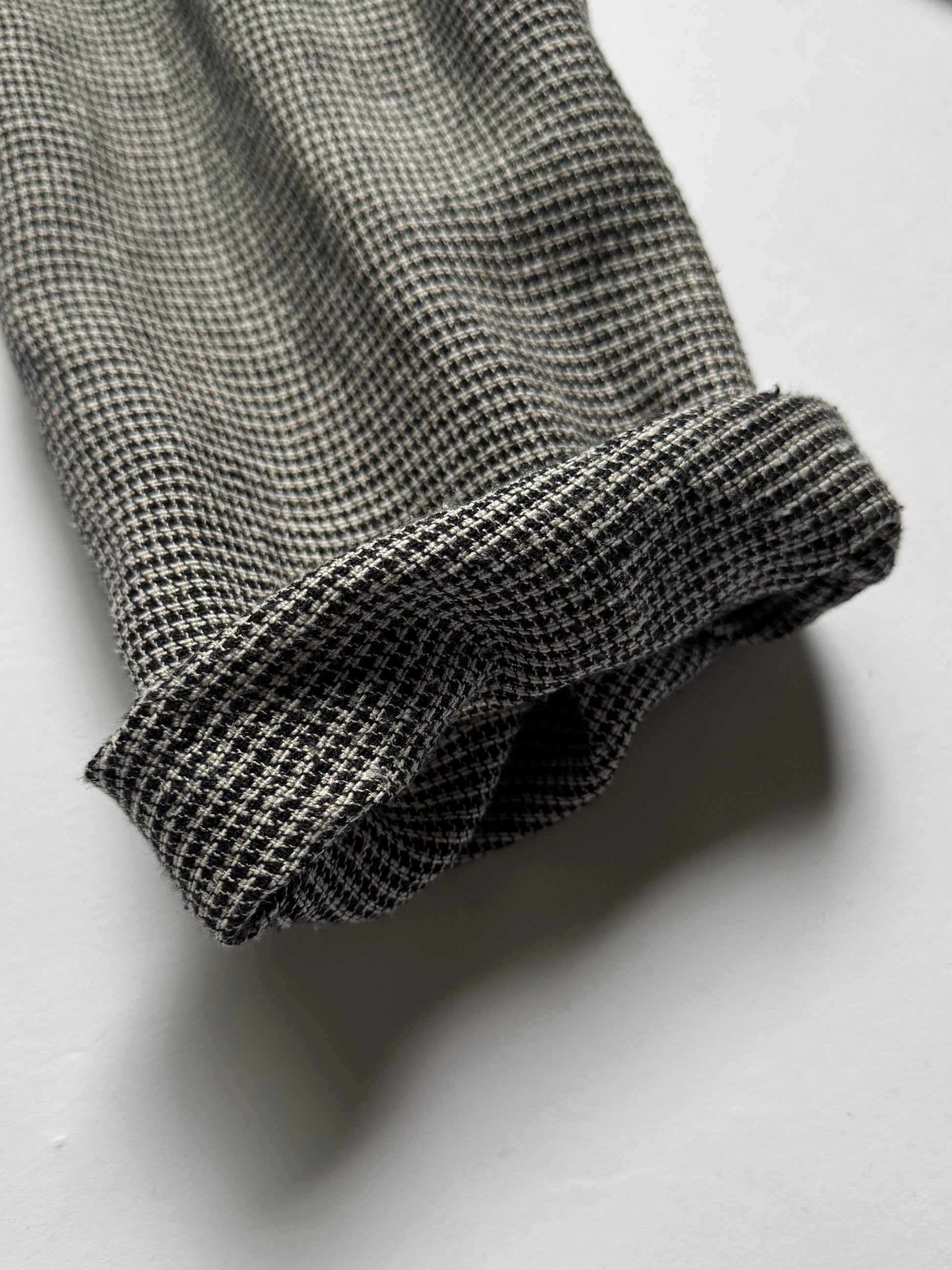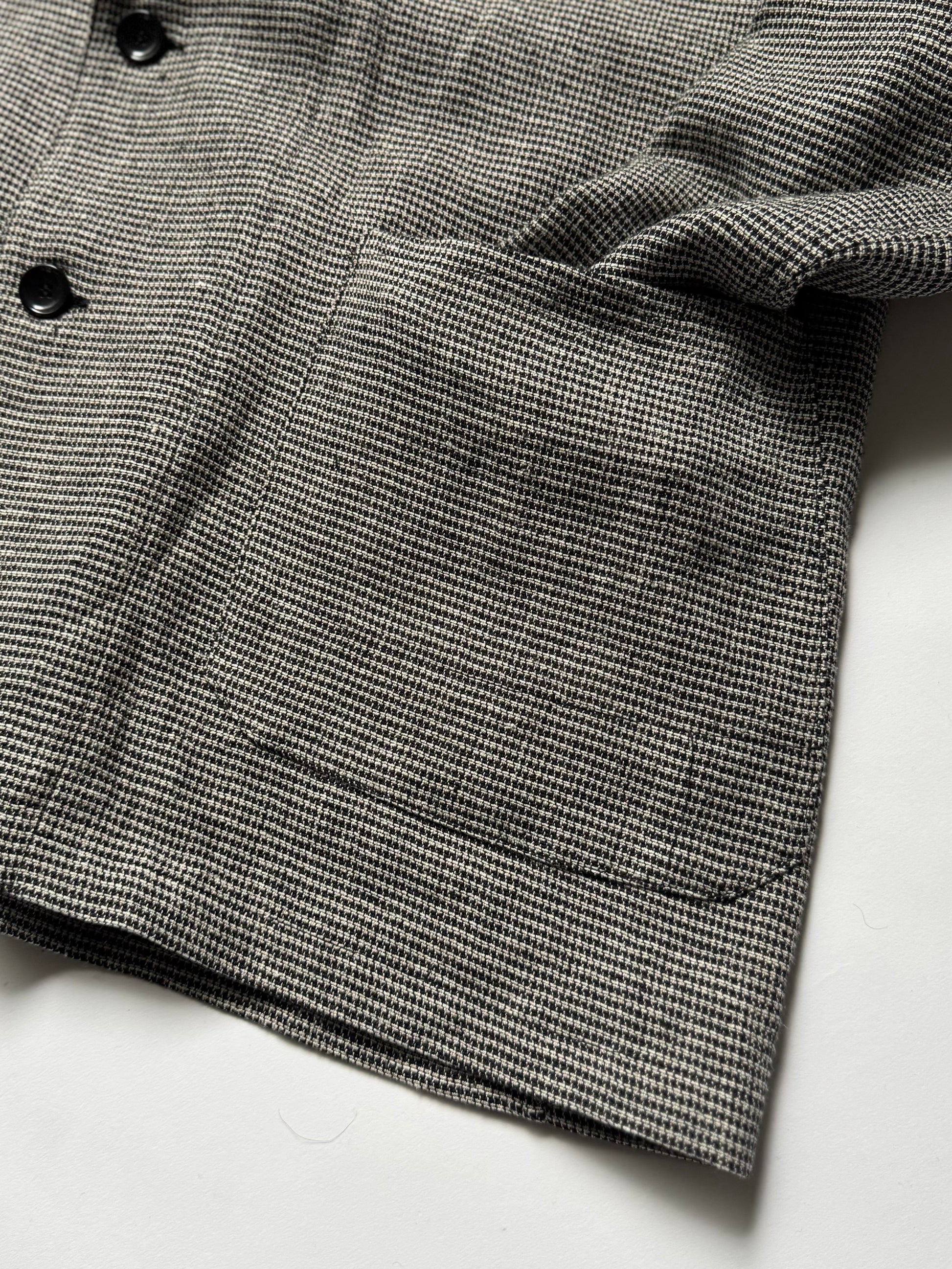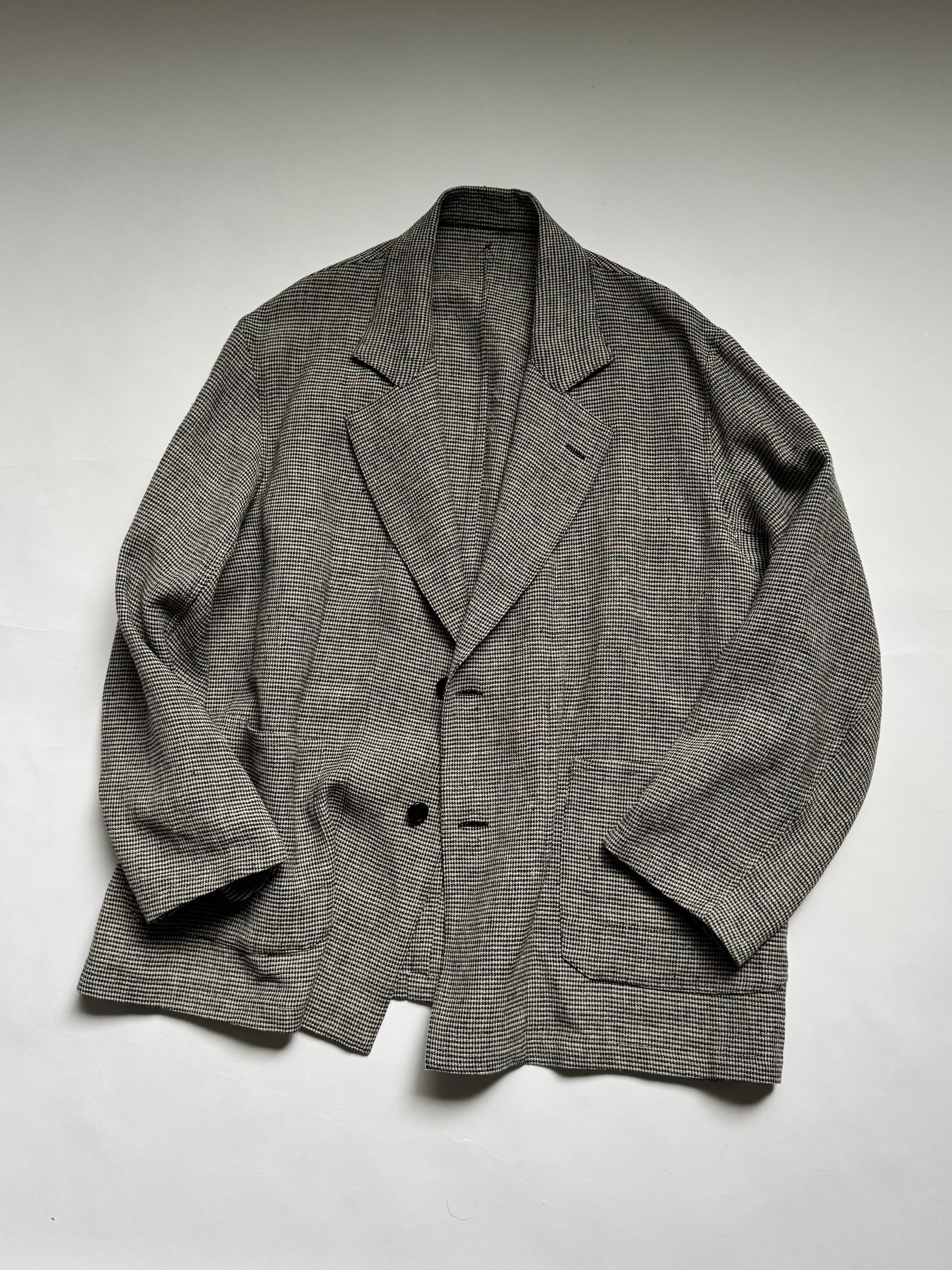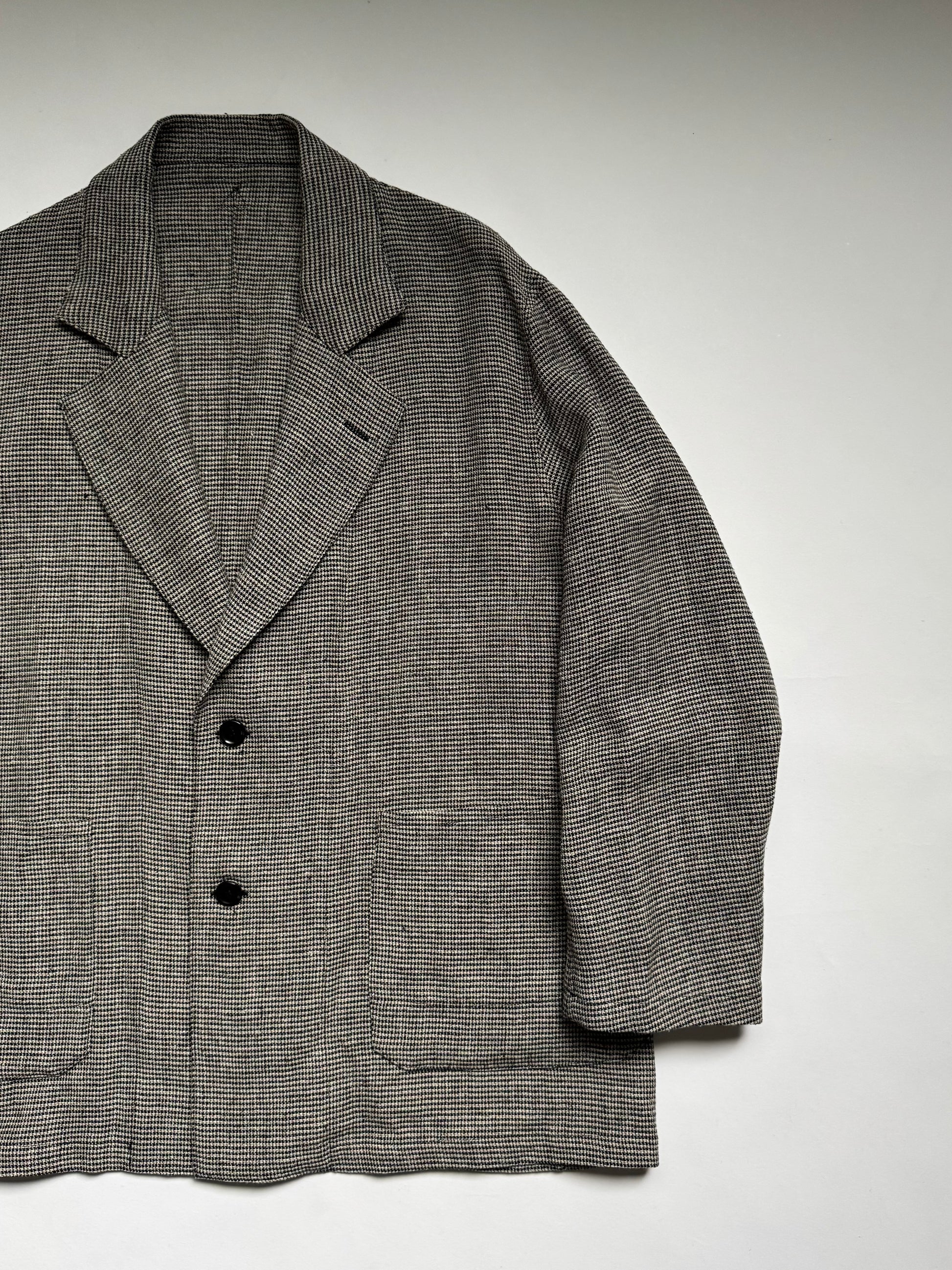陰影のある細かなハウンドトゥース柄を用いることで、見た目以上の軽やかさと、飾らない羽織りとしての使い勝手を両立。