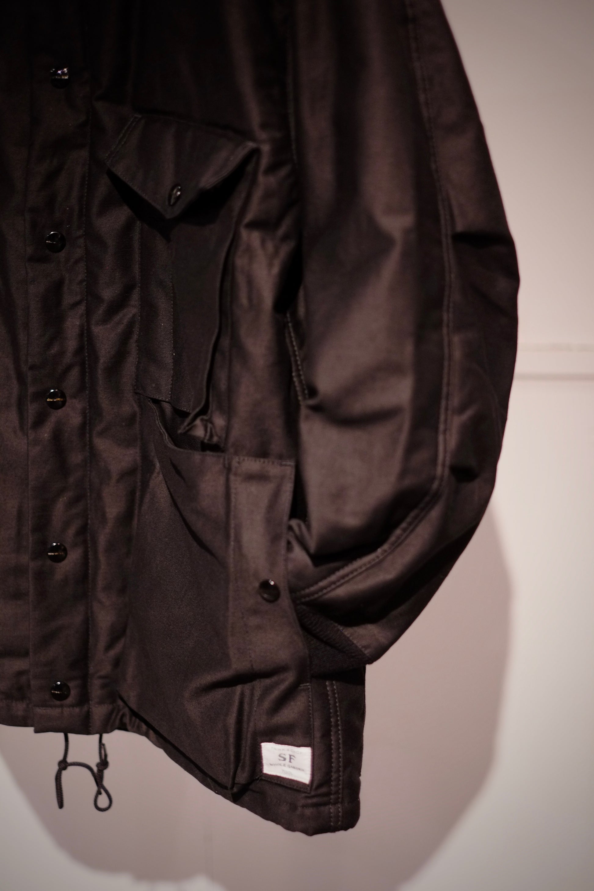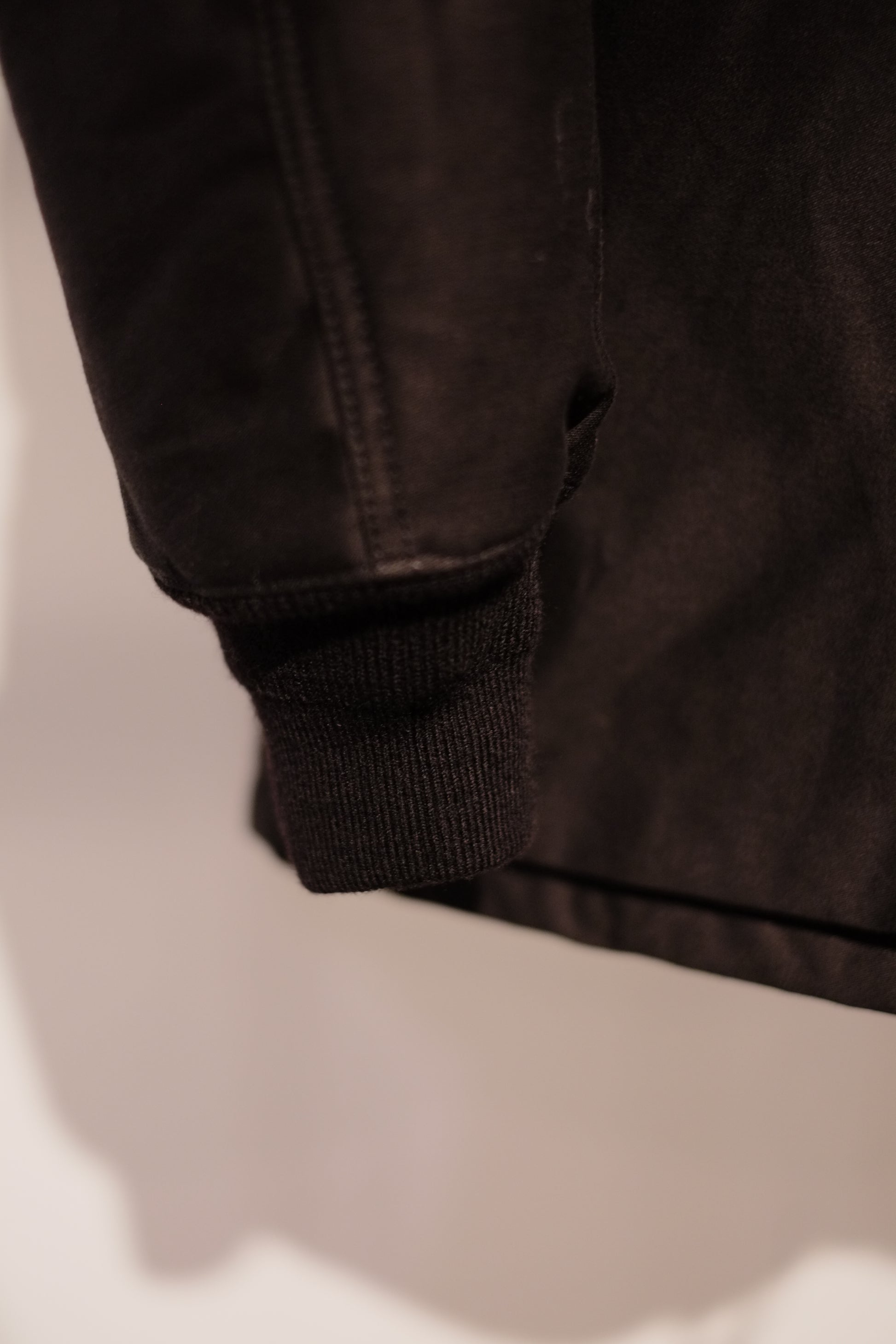 ブラックのバックサテンとの組み合わせは、カジュアルなミリタリースタイルを楽しめます。