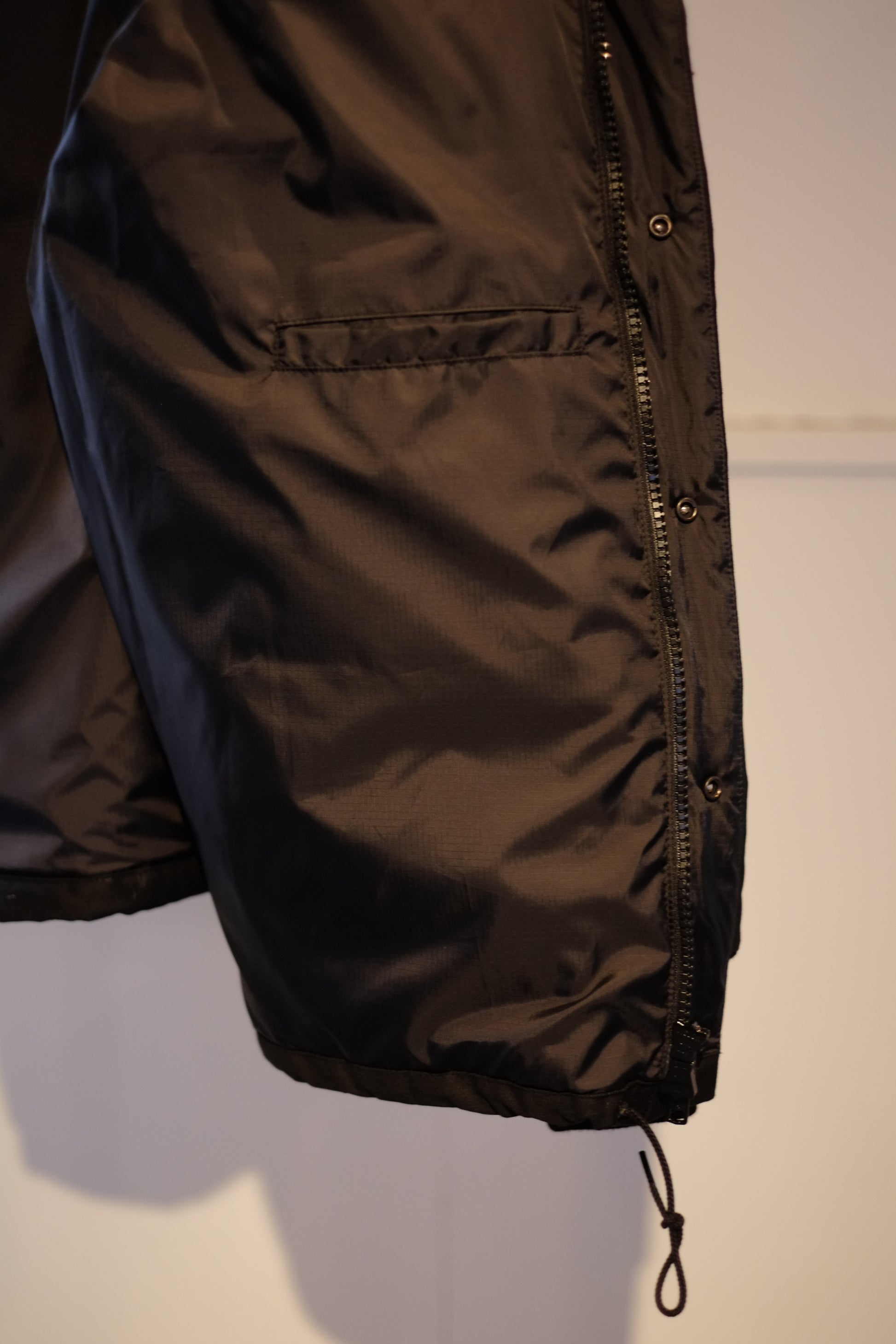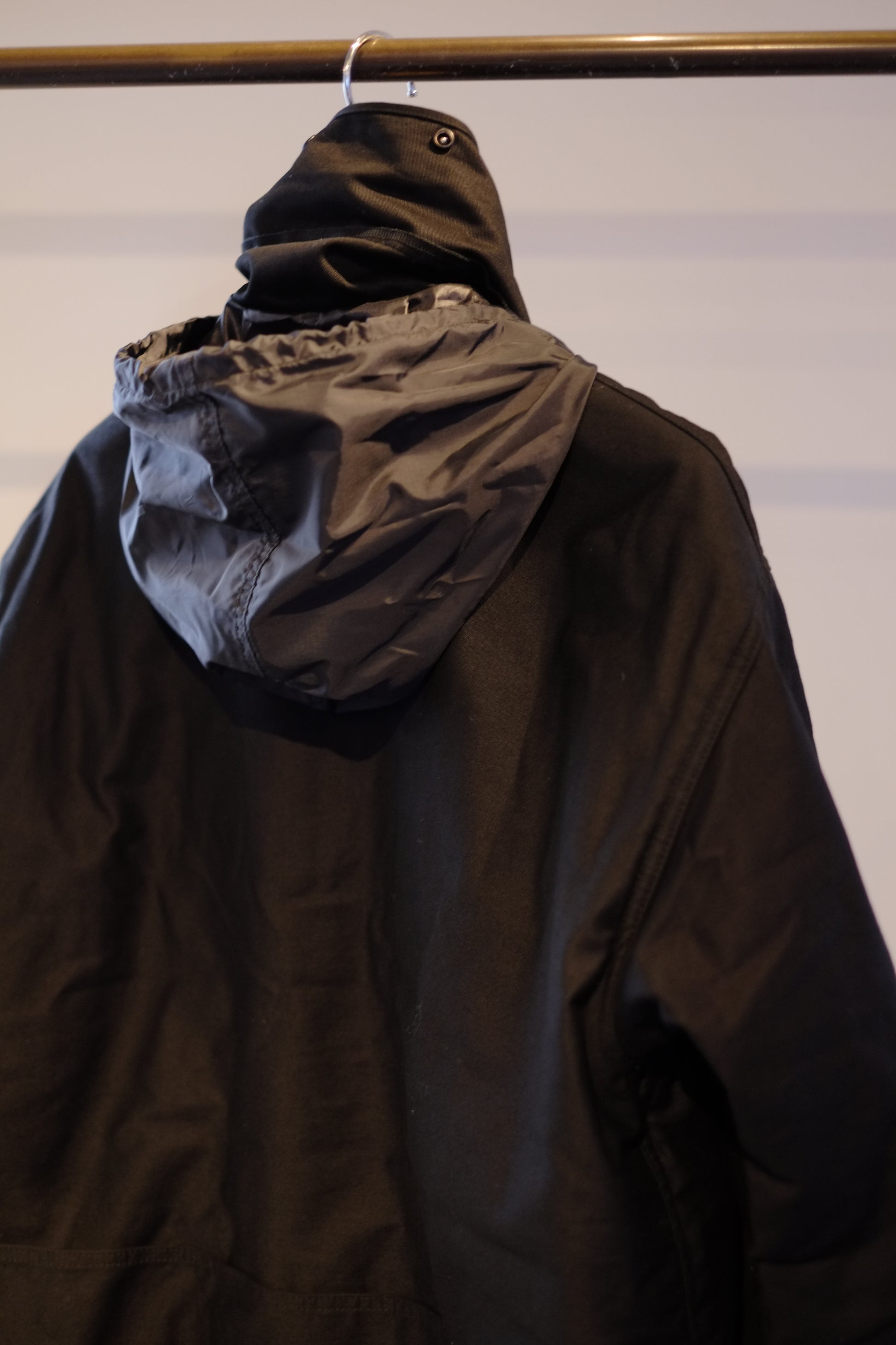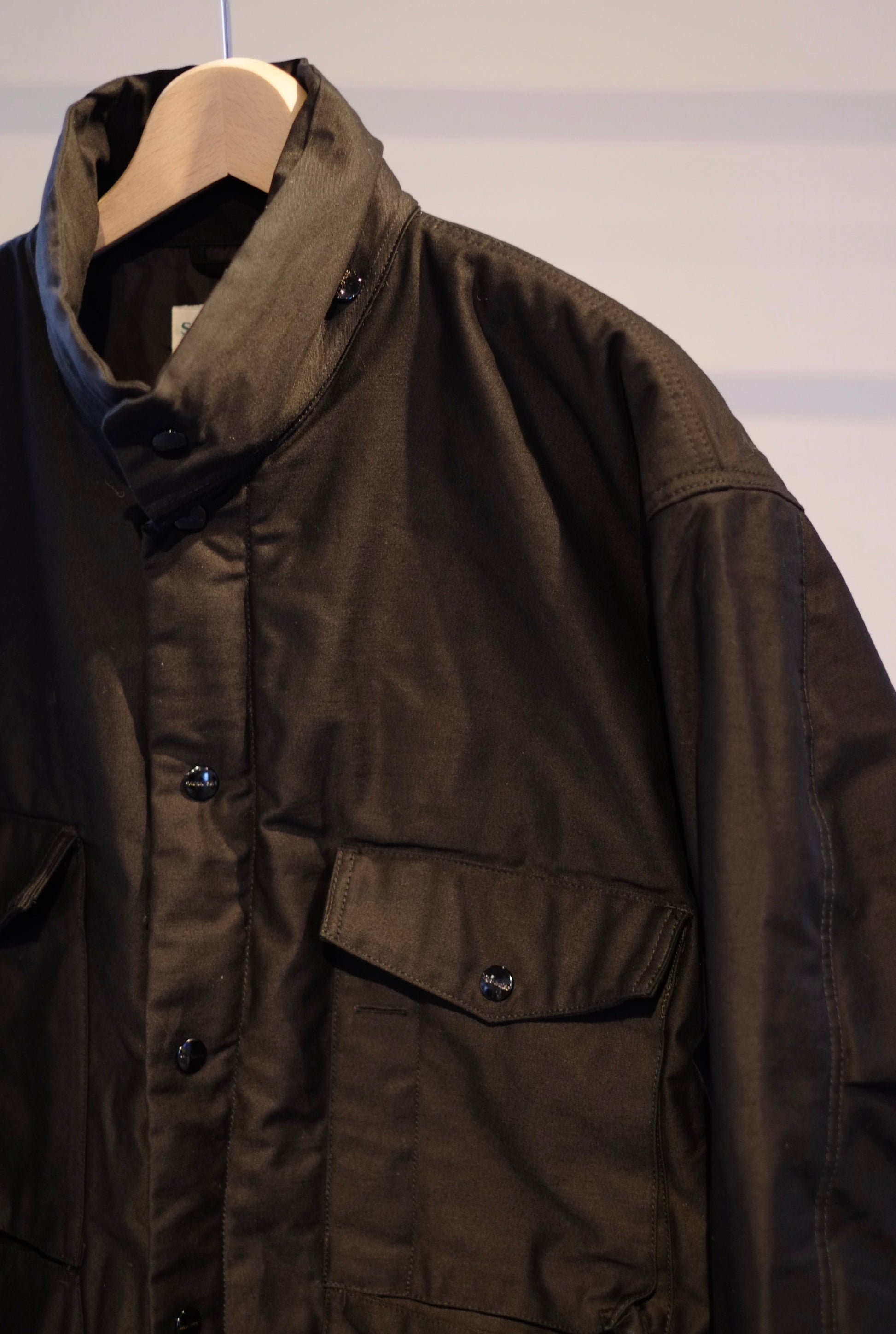 フィールドジャケットほどの着丈に、襟へ収納できるフードを搭載。