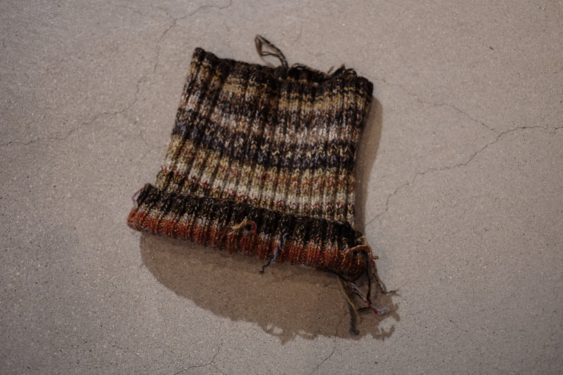 糸の開発から手掛ける Slopeslow の残糸から生まれた一点もののニットアクセサリー。