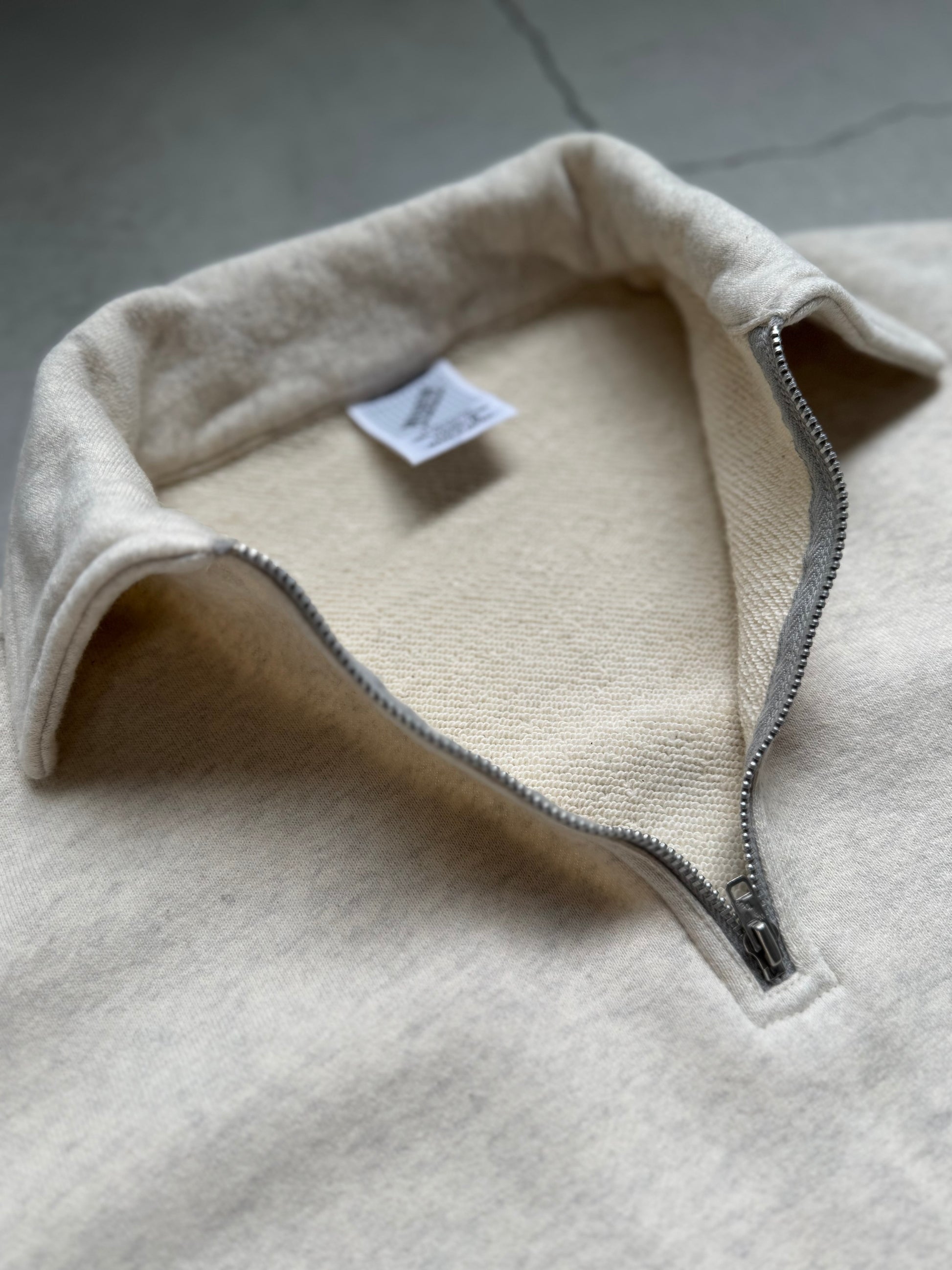 ヴィンテージのハーフジップスウェットをベースに、ロンTのような軽やかさで再構築した一着。